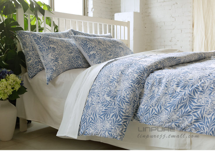 綠意盎然藍色床品四件套