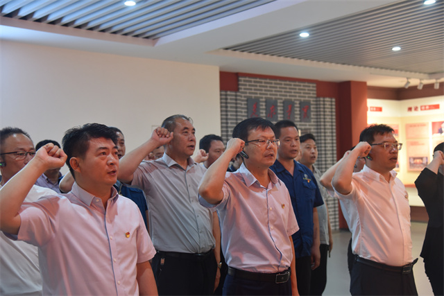 參觀最后,全體黨員在公司黨委書記、董事長盛守祥的帶領下,舉起右拳面對黨旗,重溫了入黨誓詞。