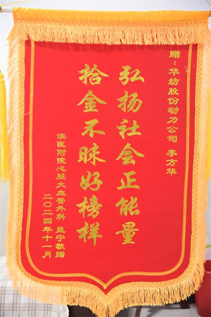 導讀:近日,公司員工李方華收到了一件特殊的禮物——一面寫有“弘揚社會正能量,拾金不昧好榜樣”的錦旗。